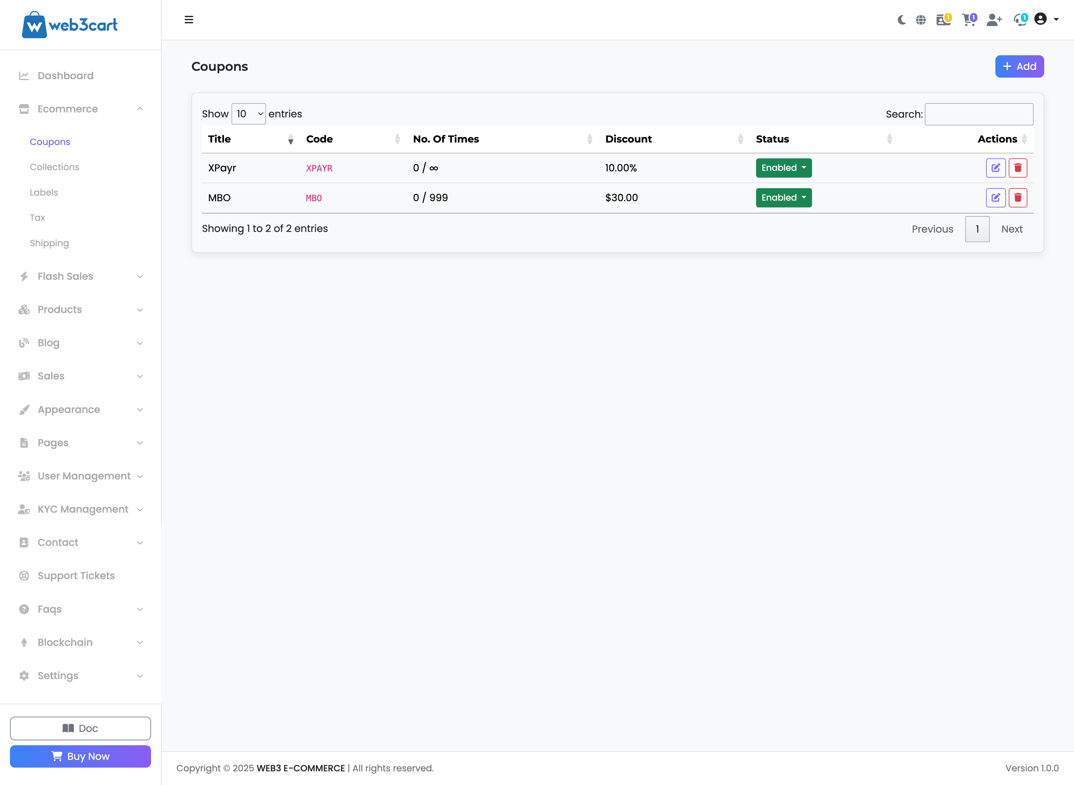 - Delete (Trash Icon): Permanently removes the coupon from the system. This action cannot be undone.