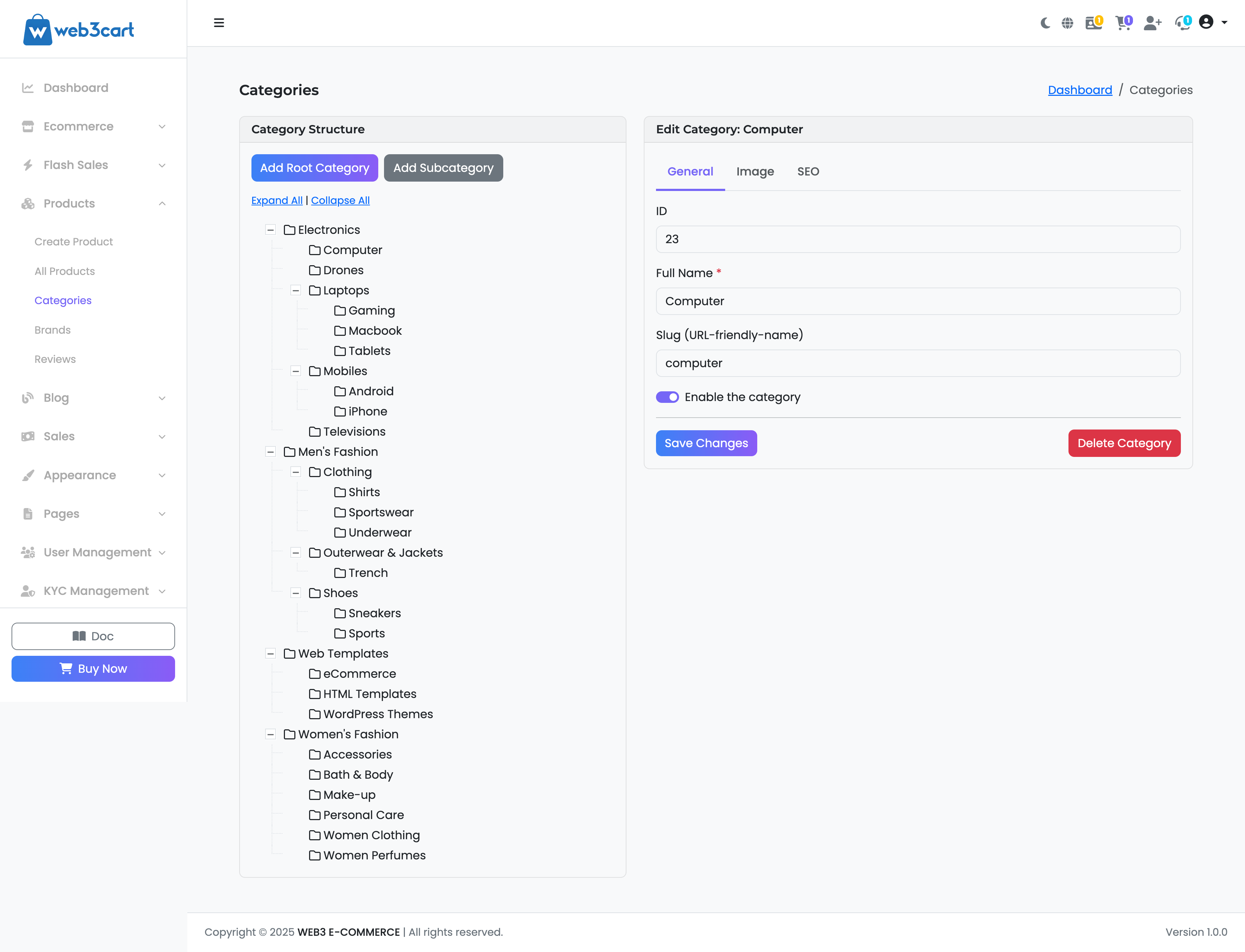 This is your central hub for organizing all products in your marketplace. A well-structured category tree is essential for helping customers find the items they are looking for. This page allows you to create, edit, re-organize, and delete product categories and subcategories.